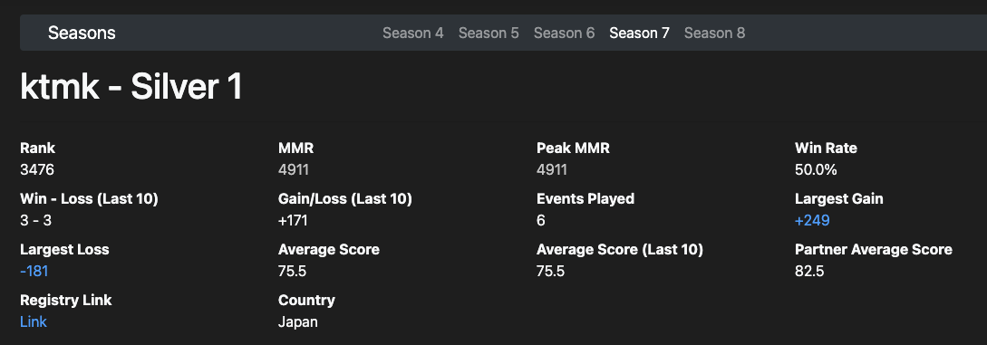 - 大会の実績より、ラウンジ(非公式のレーティングシステム)の成績を重視しているように感じますし、ラウンジの実力も最高クラス(過去一位になっている)